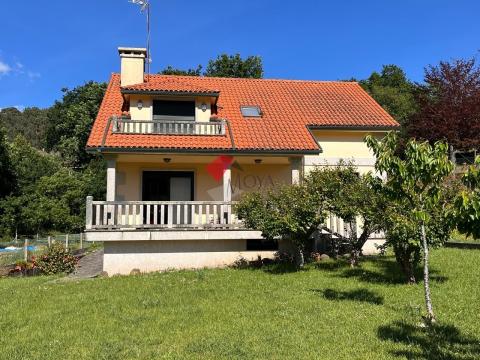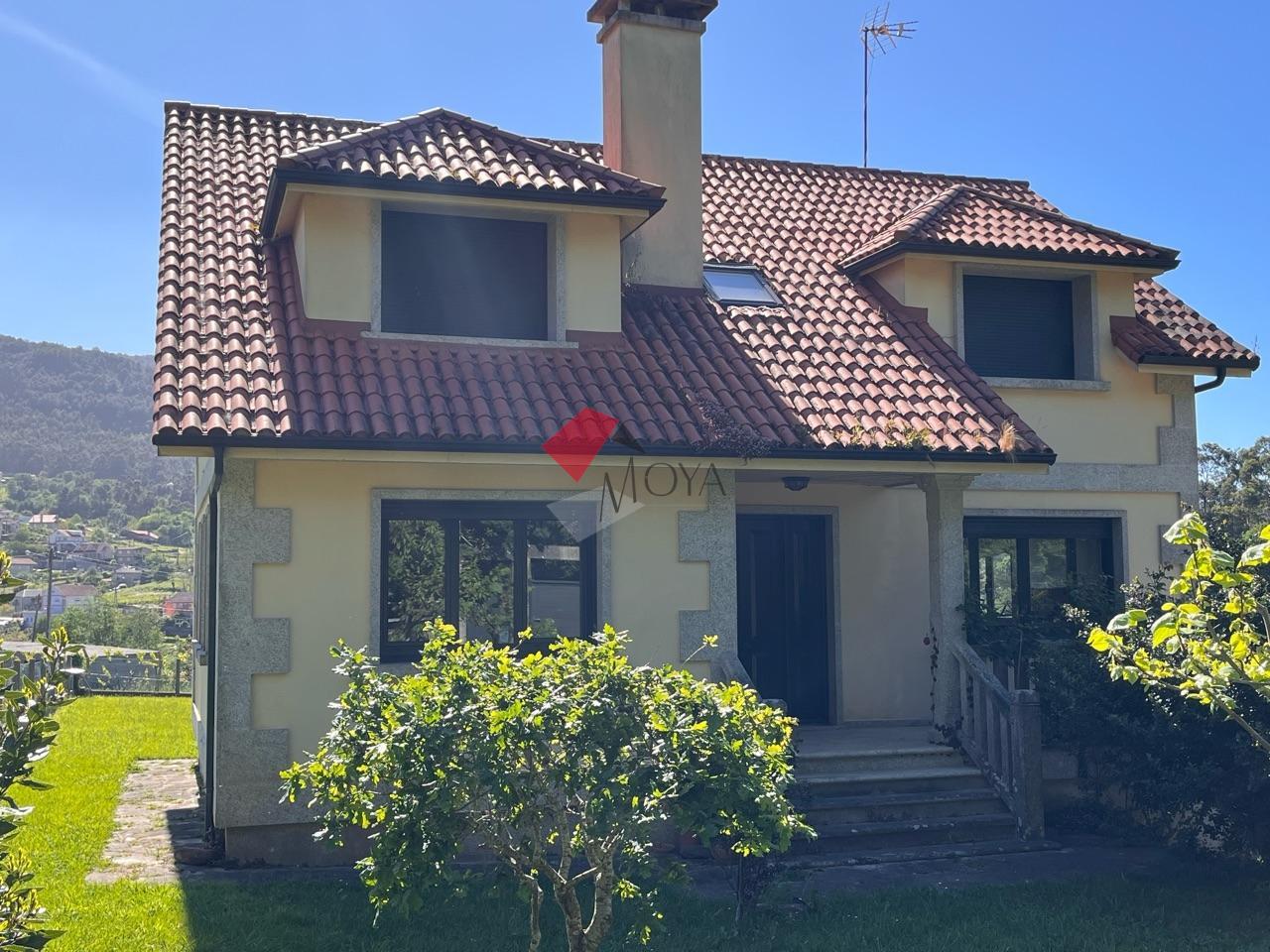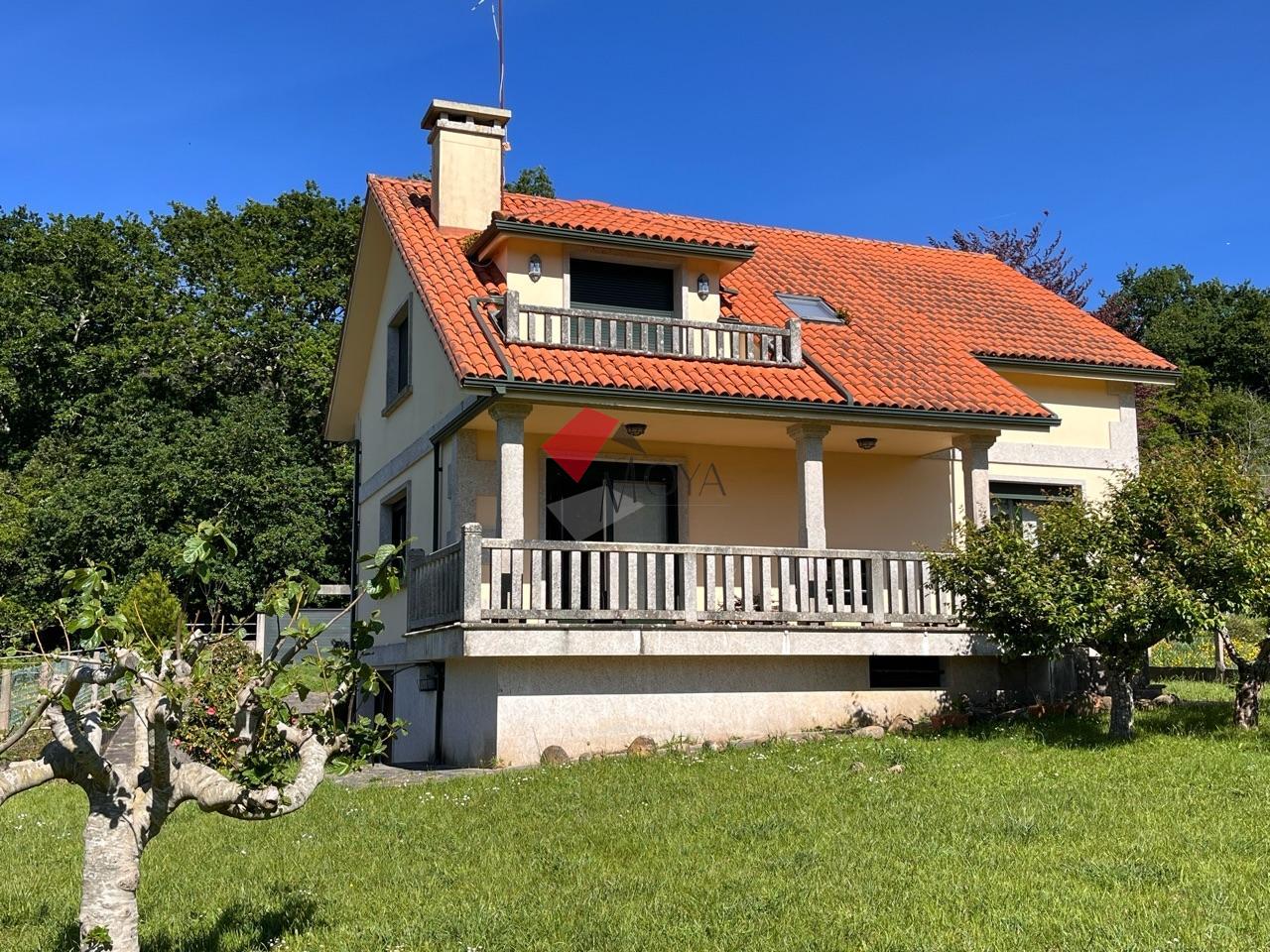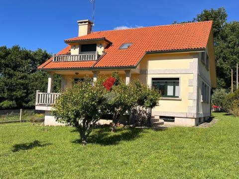 CHALET en venta en Gondomar en la zona de Lousado, entorno tranquilo, muy buen acceso y seminueva. La parcela tiene una superficie de 1.000 m2 totalmente cerrada, ajardinada y con árboles frutales y ornamentales, la construcción de la casa son 300 m2 de los cuales 100 m2 es el garaje y 200 m2 de vivienda. En el sótano está el garaje enorme diáfano, un baño, y trastero, en la planta principal está el hall de entrada, distribuidor, cocina amplia exterior y luminosa, cuarto de baño, dormitorio y salón comedor con chimenea y porche al jardín. En la planta alta hay tres habitaciones amplias y luminosas y cuarto de baño, el dormitorio principal con terraza al jardín. Casa muy luminosa, con vistas a las cíes, con poco uso, lista para entrar a vivir y con la documentación perfecta. Si está buscando un chalet con un tamaño sensato, en entorno tranquilo bien comunicado ya sea como vivienda habitual o para veranear, éste es su chalet. INFORMESE !!!!.
